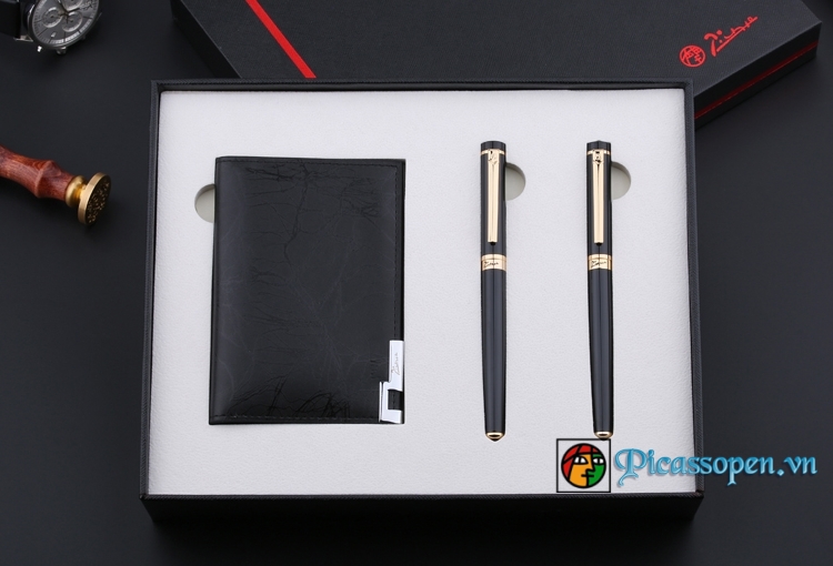 Bộ sản phẩm quà tặng bút cao cấp Picasso 908 và ví đựng name card bao gồm: 01 Bút dạ bi Picasso 908 + 01 bút máy Picasso 908 + 01 ví đựng name card màu đen kích thước 120mm x 80mm + Hộp đựng bút + Tem chứng nhận chất lượng, Catalogue, Phiếu bảo hành. Bộ sản phẩm quà tặng bút cao cấp Picasso 908 ví đựng name card là món quà tặng sang trọng, ý nghĩa tặng Sếp, Thầy Cô, Bạn bè, Khách hàng....Bút ký cao cấp Hà Nội giao hàng tận nơi, miễn phí