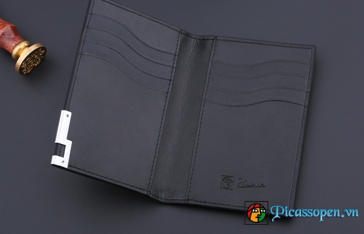 Ví đựng name card bằng da màu đen bên trong có nhiều ngăn thuận tiện cho việc lưu giữ name card, thẻ visa, ATM....