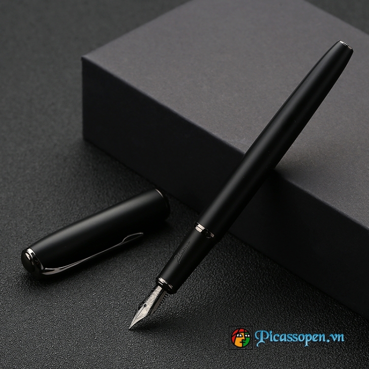 Bút máy cao cấp Picasso 916 thân bút màu đen nhám viền đen bóng.
