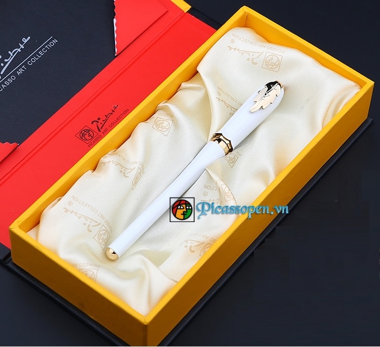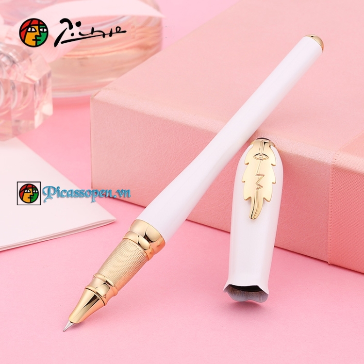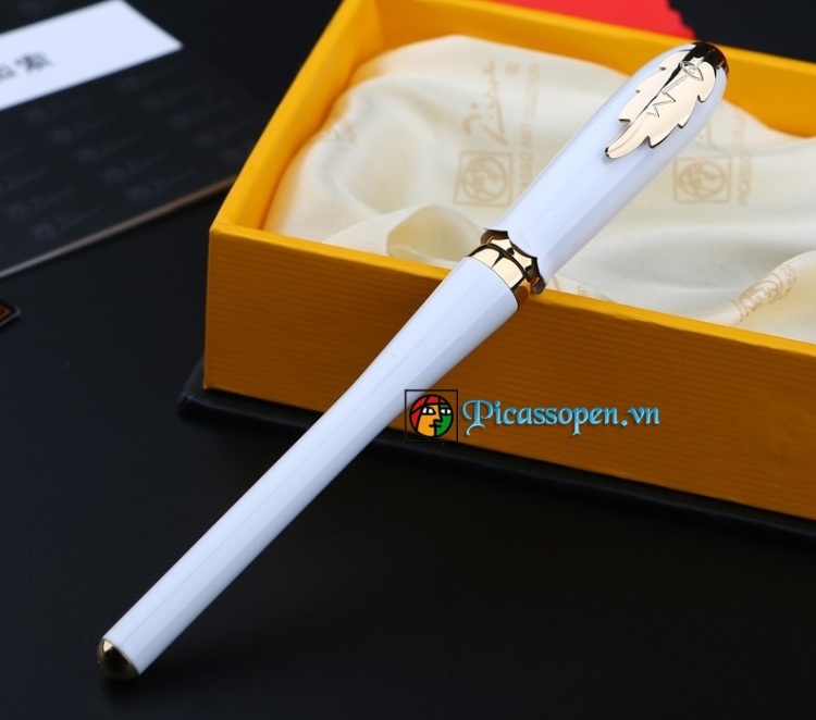 Bút dạ bi cao cấp Picasso 986 thân bút màu trắng, cài màu vàng sang trọng